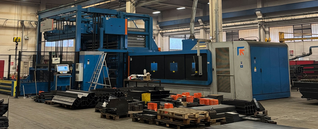 Taglio laser fibra 2d da 15kw, la forza di questa macchina è la sua velocità con spostamenti fino 180 m/min. , lo spessore massimo tagliabile è il 30mm per acciai al carbonio e 20mm per l’acciaio inox.